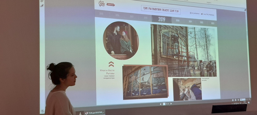 22 декабря в Петербургском центре культурного наследия им. академика Б.Б. Пиотровского прошла очередная встреча с краеведами «новой волны». Одна из координаторов проекта «Том Сойер Фест» Алина Комлевая рассказала о том, как их команда восстанавливает усадьбу генерала Прибыткова в Гатчинском районе Ленинградской области. За три года волонтерам проекта удалось провести реставрацию окна с остеклением «в ёлочку», заменить подверженные гниению бревна усадьбы, а также наладить связь с местными жителями, которые тоже принимают посильное участие в сохранении объекта.